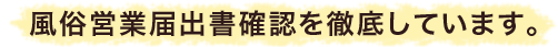 - 風俗営業届出書のコピーの確認を徹底し、届出書の確認がとれないお店の掲載はご遠慮頂いております。